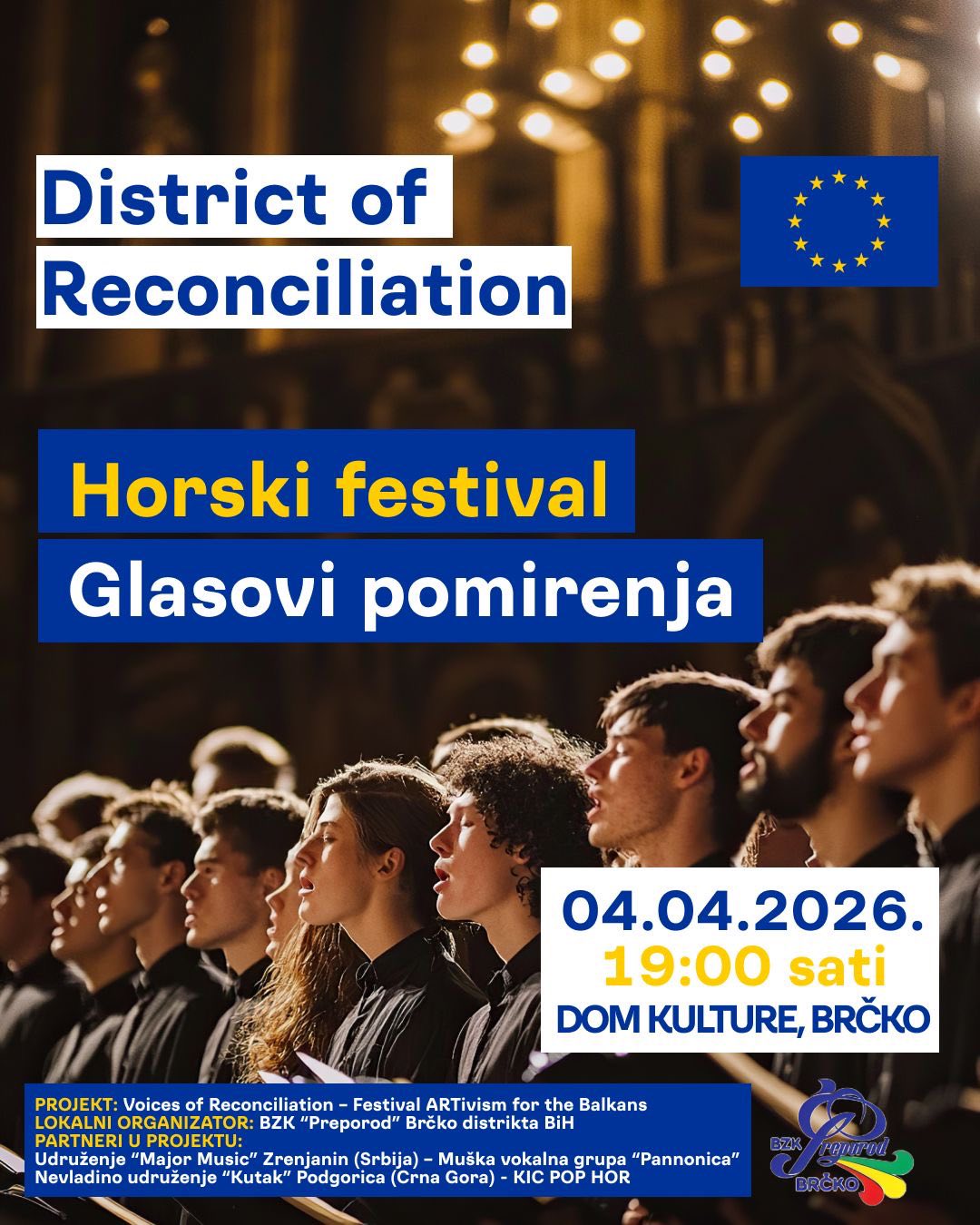 “Ovaj događaj finansira EU, a dio je projekta „Voices of Reconciliation – Festival ARTivism for the Balkans“, koji ima za cilj jačanje regionalne saradnje i podsticanje umjetničkog izraza kao sredstva pomirenja i razumijevanja među zajednicama”, naglašava osnivačica i menadžerka KIC pop hora Snežana Burzan Vuksanović, dodajući da “međunarodni festival „Glasovi pomirenja“ u Brčkom predstavlja jedinstvenu priliku regionalne saradnje horova i mjesto da publika doživi umjetnost koja nadilazi podjele i šalje snažnu poruku – da su glasovi zajedništva uvijek glasniji od razlika.